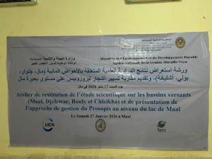 Nature Mauritanie a co-organisé avec l’Agence National de la Grande Muraille Verte de la Mauritanie, dans la ville de Maal, un atelier consacré à la présentation des résultats d’une étude scientifique sur les bassins versants des zones de Maal, Djolouar, Bouli et Chelikha, ainsi qu’à la présentation d’une approche pratique de gestion des arbres de prosopis au niveau du lac de Maal.